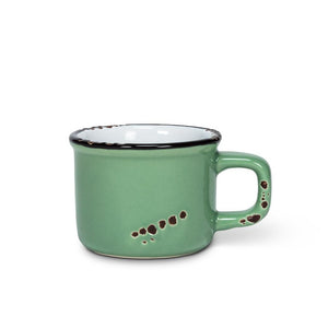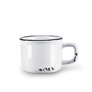 This espresso cup is the perfect, practical piece to add an effortless vintage flair to any kitchen. Made of durable stoneware, yet reminiscent of old-fashioned tin cups, this enamel-style espresso mug has a refined, rustic charm.