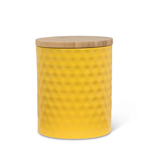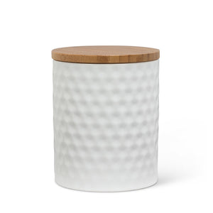 Add texture and contemporary style to your storage with this Medium Hexagon Textured Canister in White. Crafted out of stoneware with a bamboo lid, this canister makes a stylish addition to kitchens, bathrooms or bedrooms alike — keeping any space organized and fashionable. Also available in other sizes and colours.